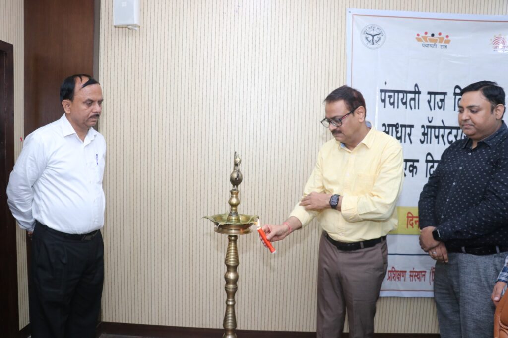 इसी क्रम में पंचायती राज निदेशालय अलीगंज लखनऊ में आधार ऑपरेटरों एवं सुपरवाइजर्स हेतु एक दिवसीय कार्यशाला का आयोजन किया गया। कार्यशाला का शुभारंभ उपनिदेशक योगेन्द्र कटियार द्वारा दीप प्रज्ज्वलन कर किया गया। इस कार्यशाला में 70 पंचायत सहायकों के साथ-साथ उत्तर प्रदेश को-ऑपरेटिव बैंक के लगभग 30 आधार ऑपरेटरों ने प्रतिभाग किया।