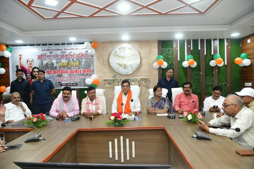 जौनपुर /लखनऊ। नगर विकास एवं ऊर्जा मंत्री ए के शर्मा ने अपने प्रभार जनपद जौनपुर भ्रमण के दौरान नारी शक्ति वंदन सम्मेलन एवं महिला जनआक्रोश मार्च में सहभागिता की। इस क्रम में उन्होंने कलेक्ट्रेट सभागार में प्रेस वार्ता को संबोधित किया।