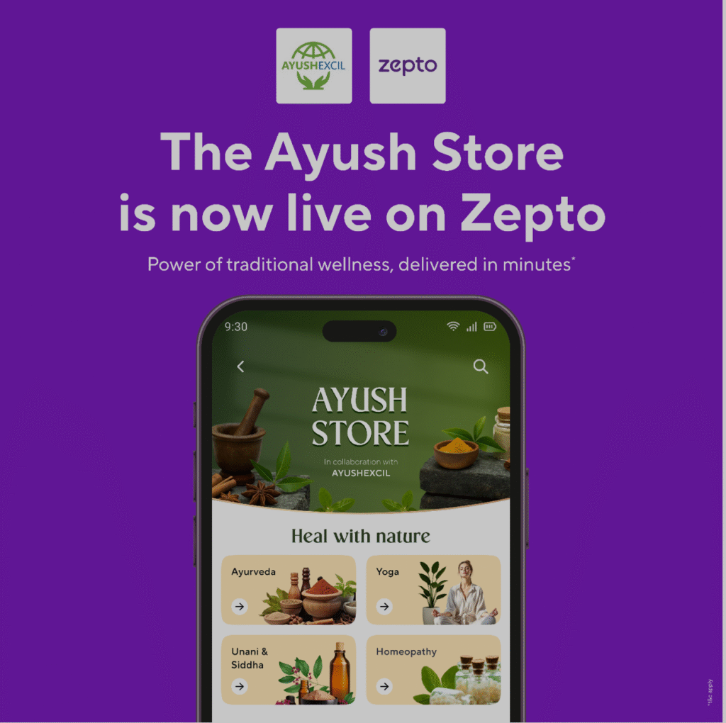 इस साझेदारी पर टिप्पणी करते हुए जेप्टो के मुख्य नीति अधिकारी रचित रंजन ने कहा, “एक युवा भारतीय स्टार्टअप के रूप में, हमारी मुख्य प्रतिबद्धता अपनी तकनीक और लॉजिस्टिक्स नेटवर्क का उपयोग करके पूरे आयुष श्रेणी के लिए पहुंच को बदलना है। पिछले कुछ महीनों में, हमने रोजमर्रा के कल्याण उत्पादों के लिए उपभोक्ता खोजों और ऑर्डर में निरंतर वृद्धि देखी है। एक समर्पित आयुष स्टोरफ्रंट बनाना इन उत्पादों को खोजने और पहुंचने में आसान बनाने का स्वाभाविक अगला कदम था। हम आयुष मंत्रालय के साथ काम करके प्रसन्न हैं ताकि विश्वसनीय भारतीय कल्याण परंपराओं को आधुनिक डिजिटल प्लेटफॉर्म पर लाया जा सके और क्षेत्र को डिजिटाइज करने तथा विस्तार देने के व्यापक प्रयास का समर्थन किया जा सके। आयुष स्टोरफ्रंट समग्र स्वास्थ्य के लिए मिनटों में डिलीवर होने वाली एक महत्वपूर्ण छलांग है।”नई साझेदारी में जेप्टो द्वारा अपनी ग्राहक आधार के बीच आयुष क्षेत्र को और लोकप्रिय बनाने के लिए कई गतिविधियां करने की योजना है। इसके अलावा, यह पहल आयुष निर्माताओं को अपनी डिजिटल उपस्थिति बढ़ाने में मदद करेगी, जबकि उपभोक्ताओं को पारंपरिक कल्याण उत्पादों तक सुविधाजनक पहुंच प्रदान करेगी।