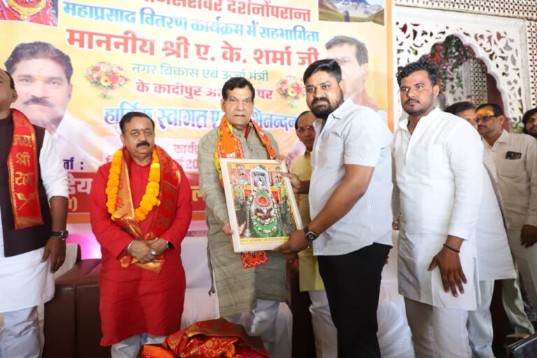 लखनऊ। नगर विकास एवं ऊर्जा मंत्री ए के शर्मा ने सुल्तानपुर जनपद के कादीपुर स्थित मंगलम मैरिज हॉल में कैलाश मानसरोवर दर्शनोंपरांत आयोजित महाप्रसाद भोज कार्यक्रम में प्रतिभाग किया। इस अवसर पर उन्होंने उपस्थित जनसमूह को संबोधित करते हुए प्रदेश सरकार की विभिन्न जनकल्याणकारी योजनाओं और उपलब्धियों की विस्तार से जानकारी दी। अपने संबोधन में...