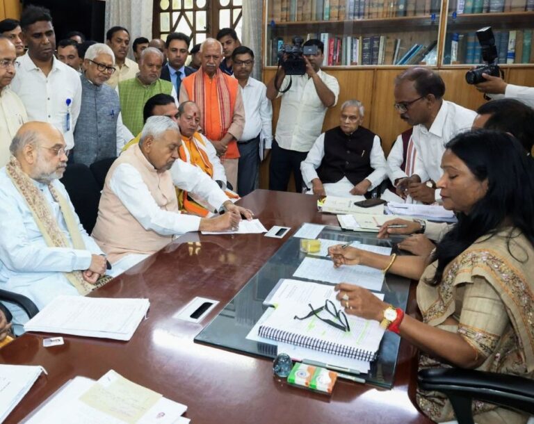 डेस्क। बिहार के मुख्यमंत्री नीतीश कुमार और भारतीय जनता पार्टी के राष्ट्रीय अध्यक्ष नितिन नबीन ने बृहस्पतिवार को केंद्रीय गृह मंत्री अमित शाह की मौजूदगी में राज्यसभा के लिए अपना नामांकन दाखिल किया। रिकॉर्ड 10 बार बिहार के मुख्यमंत्री रह चुके नीतीश कुमार और नबीन ने बिहार विधानसभा की सचिव ख्याति सिंह के कक्ष में...