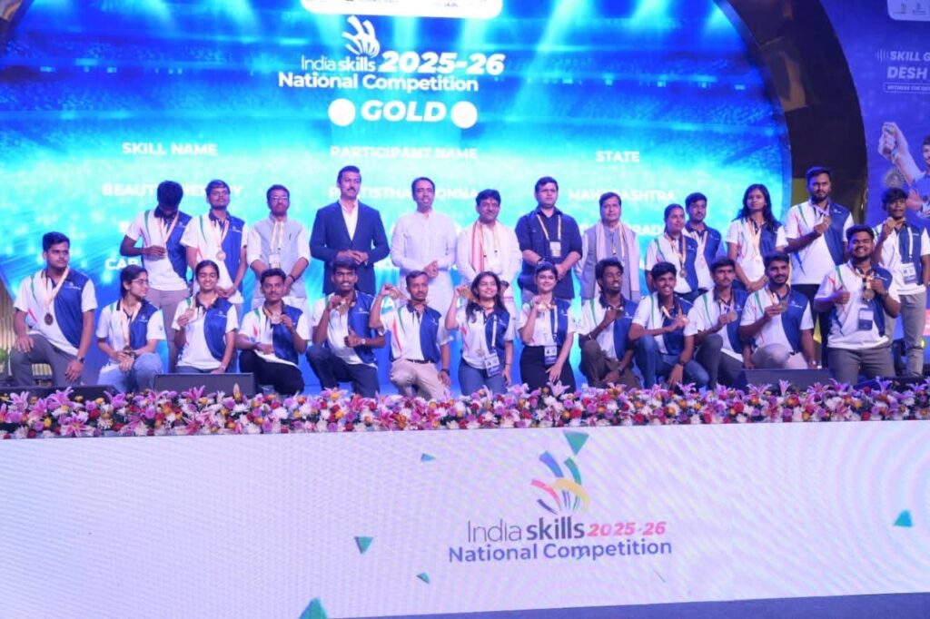 नोएडा/लखनऊ। कौशल विकास एवं उद्यमिता मंत्रालय, भारत सरकार द्वारा आयोजित इंडिया स्किल्स नेशनल कॉम्पटीशन 2025–26 का भव्य समापन समारोह गुरुवार को ग्रेटर नोएडा, जनपद गौतमबुद्धनगर में उत्साहपूर्ण वातावरण में सम्पन्न हुआ। इस अवसर पर देशभर से आए प्रतिभागियों, प्रशिक्षकों, उद्योग प्रतिनिधियों एवं अतिथियों की गरिमामयी उपस्थिति रही। कार्यक्रम में युवाओं के कौशल, नवाचार और उत्कृष्ट प्रदर्शन को सम्मानित किया गया।