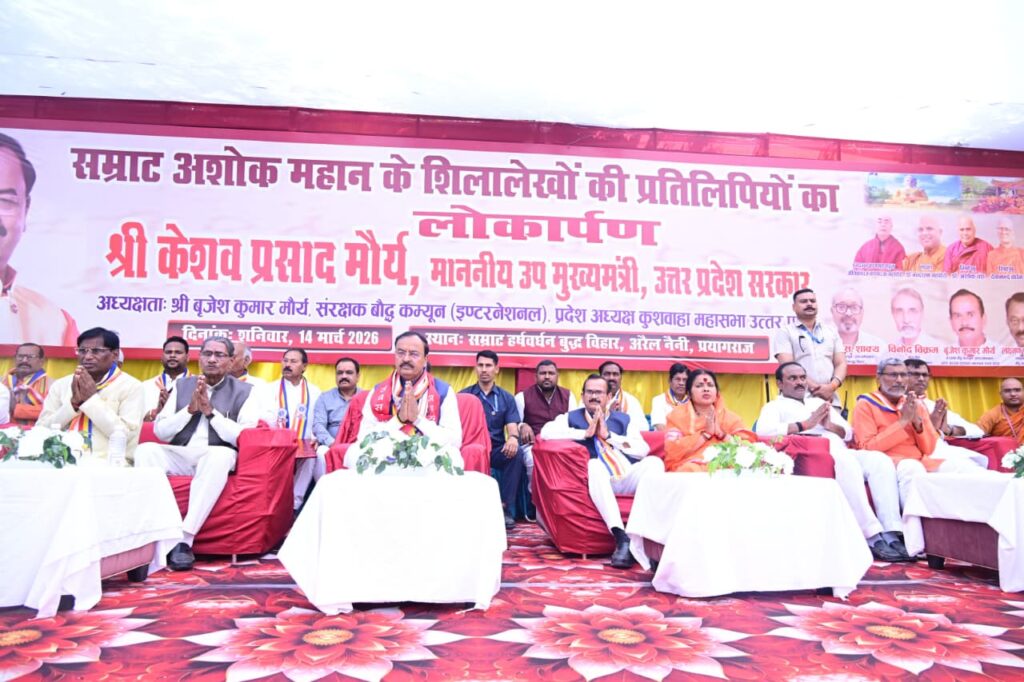 लखनऊ। उत्तर प्रदेश के उप मुख्यमंत्री केशव प्रसाद मौर्य ने जनपद प्रयागराज स्थित सम्राट हर्षवर्धन बुद्ध विहार अरैल, नैनी में चक्रवर्ती सम्राट अशोक महान के ऐतिहासिक शिलालेखों की प्रतिकृतियों का लोकार्पण किया। इस अवसर पर आयोजित कार्यक्रम को संबोधित करते हुए उप मुख्यमंत्री ने कहा कि सम्राट अशोक भारतीय इतिहास के ऐसे महान शासक थे, जिन्होंने सत्ता को केवल शासन का माध्यम नहीं, बल्कि लोककल्याण, शांति और नैतिक मूल्यों की स्थापना का साधन बनाया। उप मुख्यमंत्री ने कहा कि सम्राट अशोक ने गौतम बुद्ध के विचारों और उपदेशों से प्रेरणा लेकर अपने शासन को मानवीय मूल्यों से जोड़ा। उन्होंने अहिंसा, करुणा, सहिष्णुता और धर्म के सिद्धांतों को अपनाते हुए समाज में शांति और सद्भाव का संदेश दिया। उनके शिलालेख आज भी मानवता, नैतिकता और सुशासन की अमूल्य धरोहर हैं, जो हमें न्यायपूर्ण और मानवीय समाज की दिशा में आगे बढ़ने की प्रेरणा देते हैं।