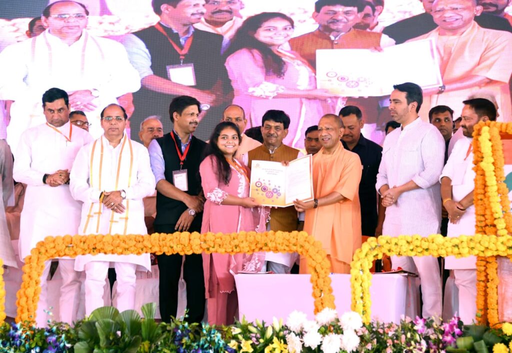 मुजफ्फरनगर / लखनऊ। मुजफ्फरनगर के नुमाइश ग्राउंड में सोमवार को आयोजित भव्य रोजगार मेला एवं विकास कार्यक्रम में प्रदेश के मुख्यमंत्री योगी आदित्यनाथ ने मुजफ्फरनगर में 951 करोड़ रुपये से अधिक की 423 परियोजनाओं का लोकार्पण और शिलान्यास किया। पुण्यश्लोक लोकमाता अहिल्याबाई होल्कर की प्रतिमा का अनावरण किया गया। कौशल दर्शन पुस्तक का विमोचन किया गया, जिसमें सफल युवाओं की कहानियाँ हैं।एआई सेंटिमेंट और रेडिनेस रिपोर्ट लॉन्च की गई, जो तकनीकी शिक्षा और नवाचार को बढ़ावा देगी। एनएसडीसी और नीति आयोग के महिला उद्यमिता मंच (डब्ल्यूईपी) के बीच साझेदारी हुई। युवाओं को नियुक्ति पत्र वितरित किए गए, जिसमें अक्षत गर्ग, रक्षित त्यागी, केशव, अनुज धीमान, अंशिका गोयल, नायब परवीन, विशाल और वैशाली जैसे उम्मीदवारों को नौकरी मिली। साथ ही मिशन द्वारा आर्टिफिशियल इंटेलिजेंस आधारित वीडियो का प्रदर्शन भी किया गया।
