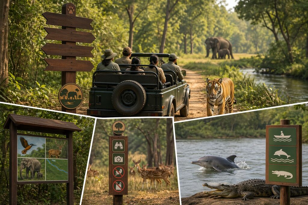 साइनेज किसी भी पर्यटन स्थल का ‘मौन गाइड’ होता है। साइनेज आगंतुकों के लिए अत्यंत उपयोगी सिद्ध होती है, जिससे वे विभिन्न मार्गों, जोनों और प्रमुख स्थलों तक आसानी से पहुंच पाते हैं। दिशा-निर्देशन के साथ वर्जित क्षेत्रों, वन्य जीवों की उपस्थिति एवं प्रतिबंधित स्थलों की स्पष्ट जानकारी देकर सुरक्षा भी सुनिश्चित करती है। साथ ही ‘नो प्लास्टिक’, ‘वन्य जीवों से दूरी बनाएं’ और ‘शांत रहें’ जैसे संदेशों के माध्यम से पर्यावरण संरक्षण के प्रति जागरूक भी करती है। ये साइनेज वन्य जीवों, जैव विविधता और स्थानीय पारिस्थितिकी से जुड़ी रोचक व शिक्षाप्रद जानकारी का भी महत्वपूर्ण स्रोत होते हैं। बहुभाषी साइनेज की सुविधा के कारण विदेशी पर्यटकों को भी भ्रमण के दौरान विशेष सहूलियत मिलती है।